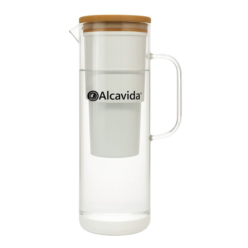 La jarra alcalinizadora de cristal Alcavida es de cristal Borosilicate libre de tóxicos y BPA, Hecha en España con un completo filtro de 5 capas purifica hasta 70 sustancias nocivas del agua de grifo .