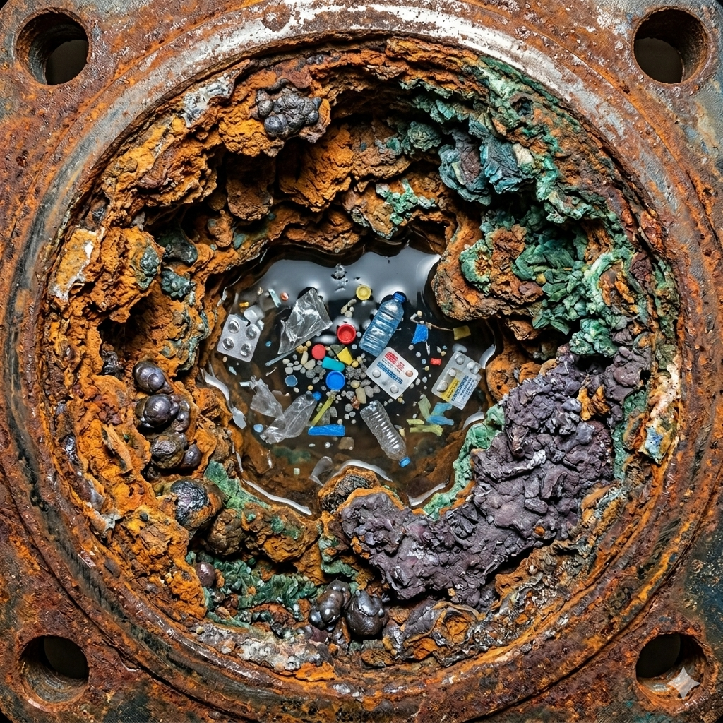 Que se acumulan en las tuberías a lo largo del recorrido y por el tiempo.